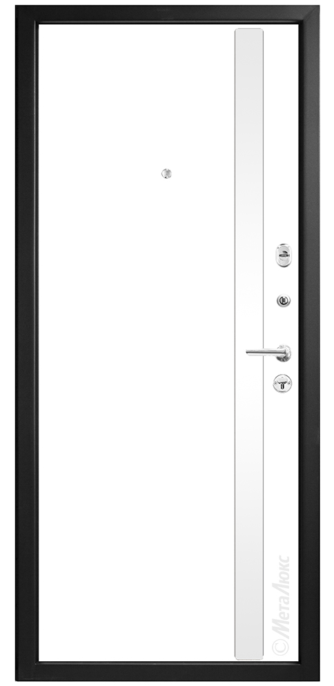 Отделка внутри | панель МДФ 12 мм, пленка SoftVelvet, цвет «Белый» №17, вставка из белого глянцевого стекла |