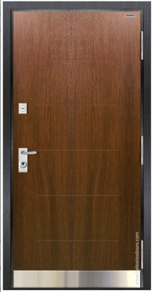 Три противосъемных штыря предотвращают взлом двери путем срезания петель. Замок 4-го класса противовзломности (Securemme, Италия) с защелкой и тремя ригелями на 3 выдвижения. Линейный механизм регулирования защелки; цилиндровый (10-pin) механизм запирания с перфоключами. Функция отпирания защелки от ключа. В комплекте 5 ключей + 1 монтажный ключ, который перестает открывать замок после пререпрограммирования основным ключем.