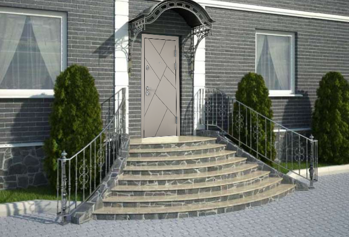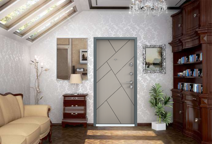 - Противосъемные ригеля, девиатор, двойной контур уплотнителя, металлический эксцентрик, глазок с металлической шторкой и широким углом обзора, накладной порог из нержавеющей стали