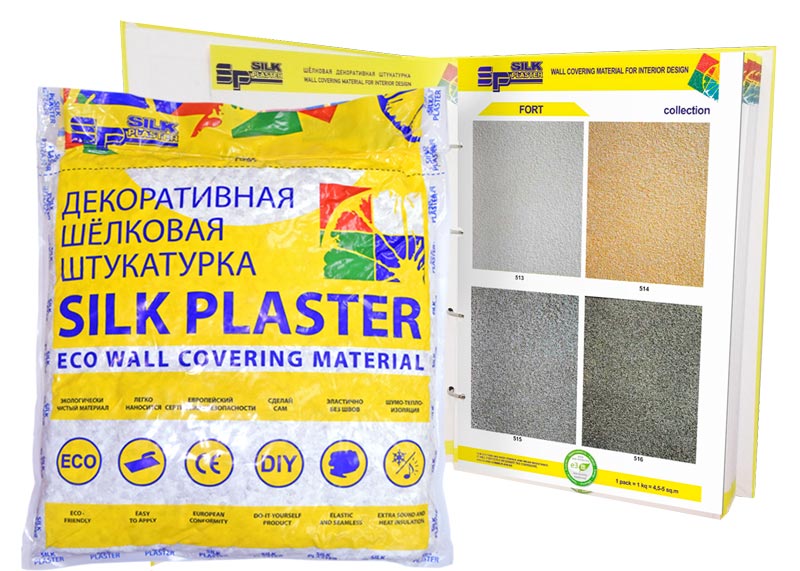 Коллекция «Форт» -отличается повышенной износостойкостью материала. Рекомендована для помещений с высокой проходимостью. Прекрасное решение для ремонта коридоров, холлов и мест общего пользования. Хорошо сочетается с другими видами шелковой декоративной штукатурки SILK PLASTER.