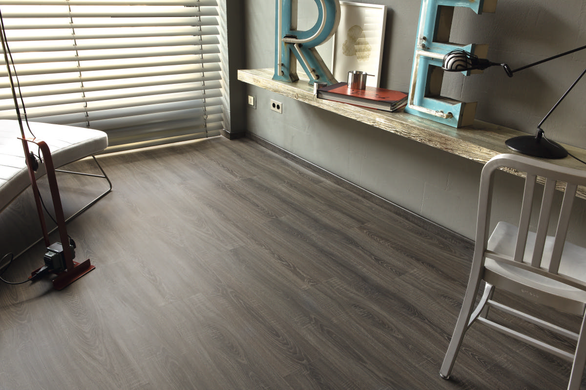 Ламинат Дуб Силея выделяется запоминающимся, привлекательным декором, в котором темно-серые волокна обладают слегка коричневым оттенком.