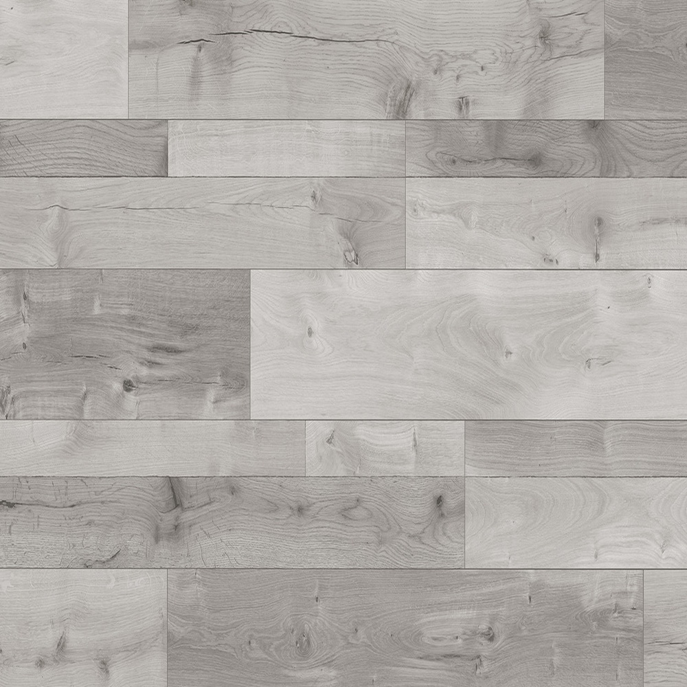 Светлый декор ламината Дуб Фарко Коджи в точности соответствует настоящему деревянному паркету. Рельефные линии, сучки и фактурные волокна на необычной поверхности с разными ширинами планок, которые выделены фасками по периметру, делают ламинат абсолютно идентичным с настоящим дубовым полом.