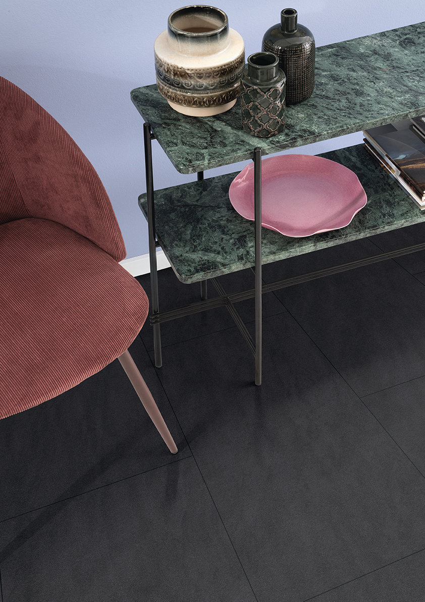 Влагостойкий ламинат Egger Камень Сантино тёмный – черный декор с матово-глянцевым эффектом является репродукцией текстуры камня.