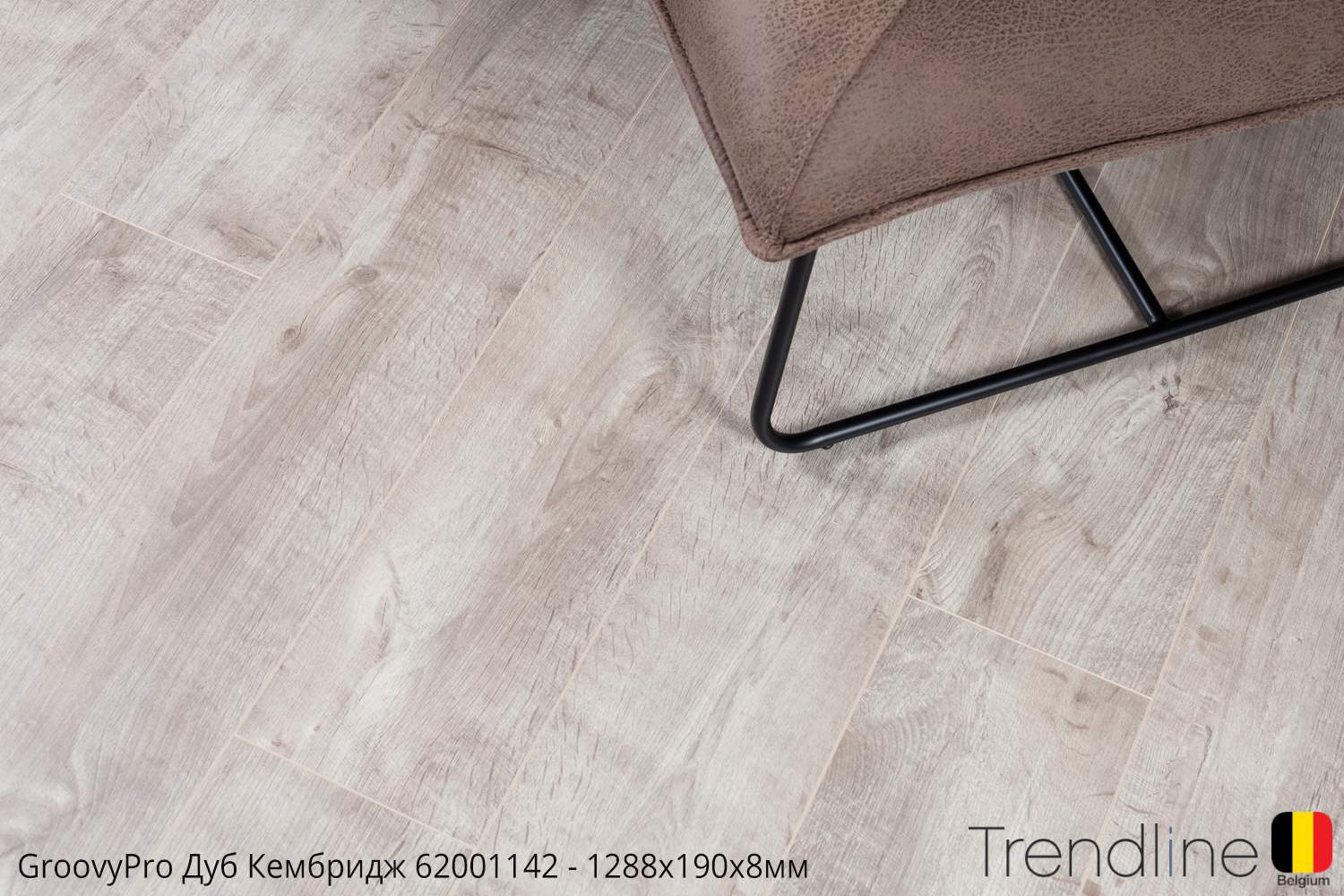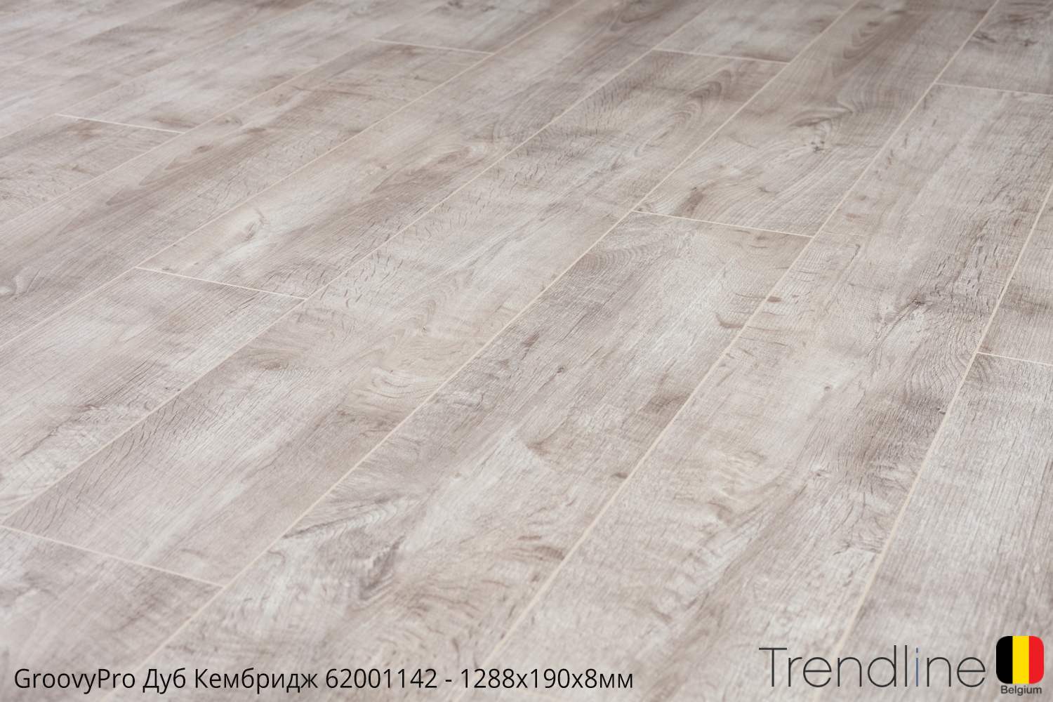Светло серый цвет бельгийского ламината марки Трендлайн, щедро “приправлен” активной текстурой древесины, что гармонично выглядит с песочно-бежевыми вкраплениями. Годовые кольца и сучки выглядят естественно и деликатно, а подкрашенная молочным цветом фаска, подчеркивает геометрические параметры пласти.